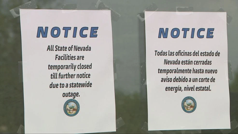 Outage noticed posted outside a Nevada DMV office on Tuesday, August 26, 2025. (KSNV)